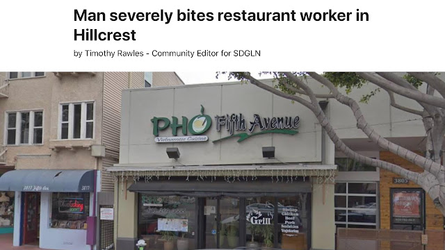 I did what the police didn't do and as a result of the police not apprehending Bruno Souza right after he violently assaulted and injured me without any provokation, six weeks later he attempted to murder another victim that he had targeted in the same area where he had attacked me. During my investigation I discovered that Souza had also attacked a female employee of local pharmacy. He was not charged in that attack on the female pharmacy employee just like he was not arrested or charged for assaulting me despite his extremely long criminal history of violence. He had also terrorized business owners and their patrons for weeks inside of San Diego's gay community without the police doing anything to Souza. The city's political left wing homeless advocacy movement in partnership with the Democrat Socialist politicans on the San Diego City Council have forced the San Diego Police Department to uphold a "hands off" policy in relation to the homeless anarchists and squatters who have taken over many of San Diego's public streets. On Wednesday, he attacked a restaurant worker in Hillcrest and bit through the restaurant worker's artery in the wrisr area with his teeth in the exact same manner that he tried to do to me on November 30th. The restaurant worker was bleedly profusely from the injury to the artery in his wrist.